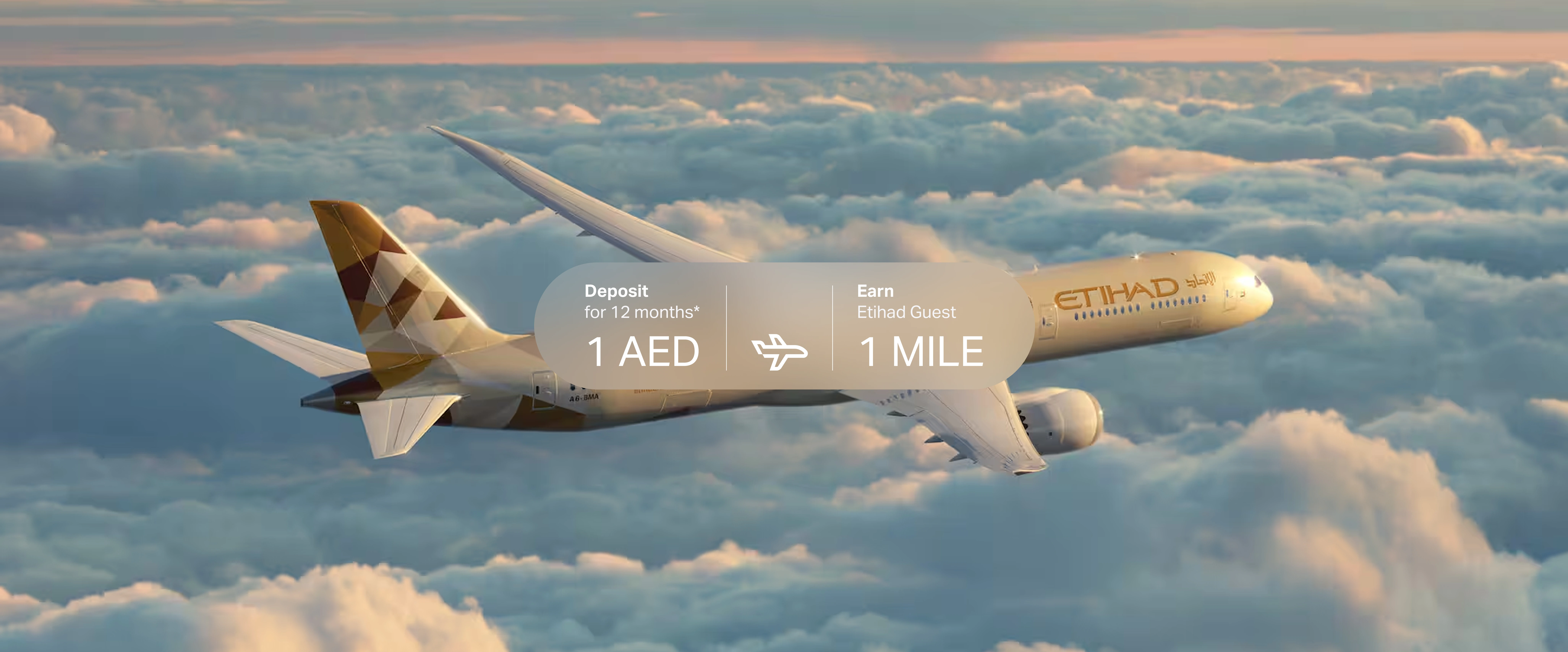 Planning a trip to Europe or an exotic getaway? Open an Etihad Guest Fixed Saving Space and, instead of interest, earn up to 1 Etihad Guest Mile for every AED you save on deposits fixed for 6 or 12 months.